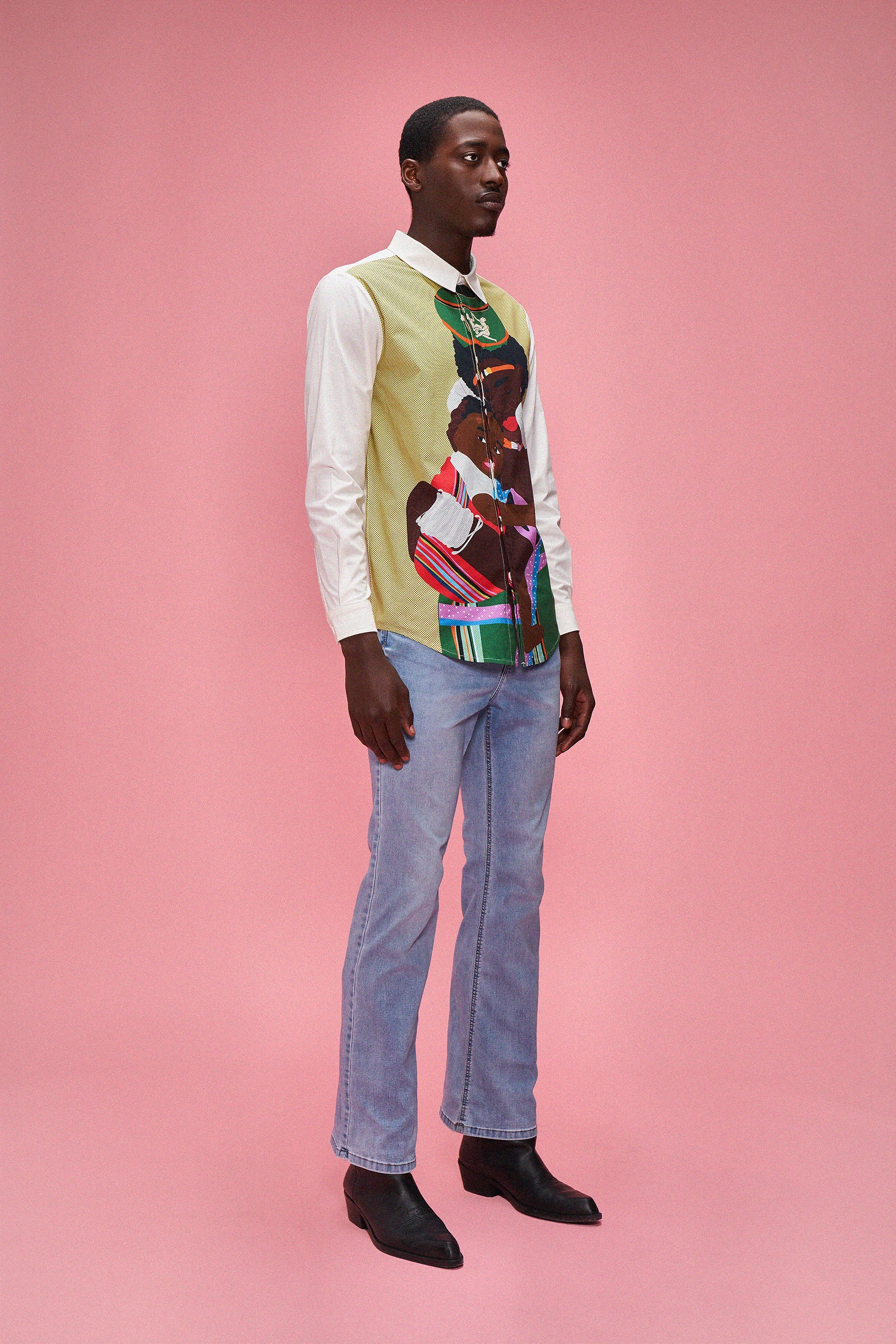 Made in a heritage-inspired print clad in regal images of a mother holding her child in her traditional Vhavenda garb. The Heritage shirt is made from fine stretch cotton which provides more comfort than your traditional white shirt. The half moon collar creates an excellent fit while the pop-art elevates this classic look into a statement piece that can take you from the office to a night out.